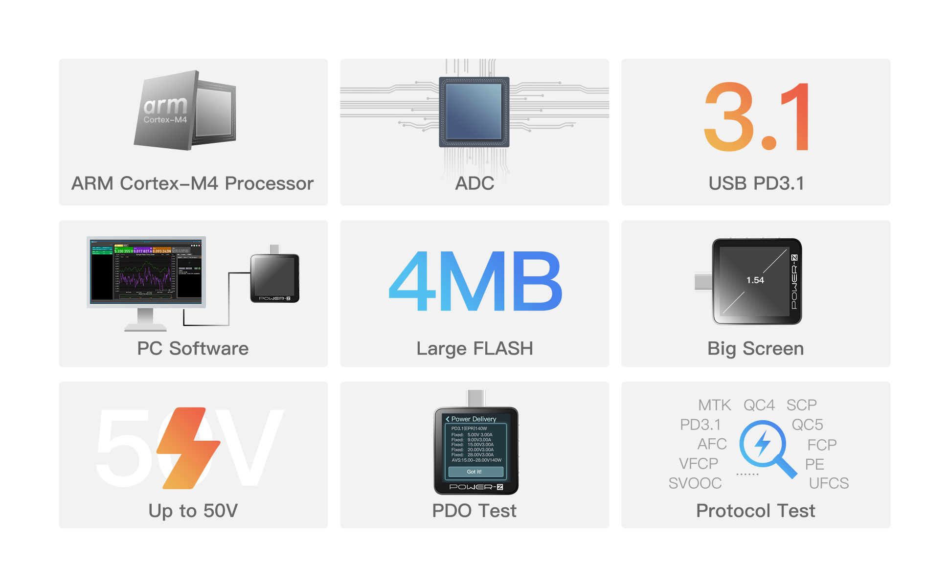 - 【PD3.2】This is the POWER-Z product page. This tester is the latest version and can support PD3.2.